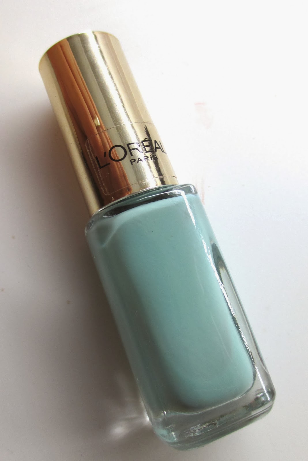 As I have the same shade in two formulas from two different brands I thought I would put them to the test and see how they wear, how long they last, and which one, in the end comes out on top. The two nail polishes are L'oreal Color Riche in shade 602 Perle de Jade and Essence Nail Polish in shade 146 that's what i mint!.